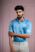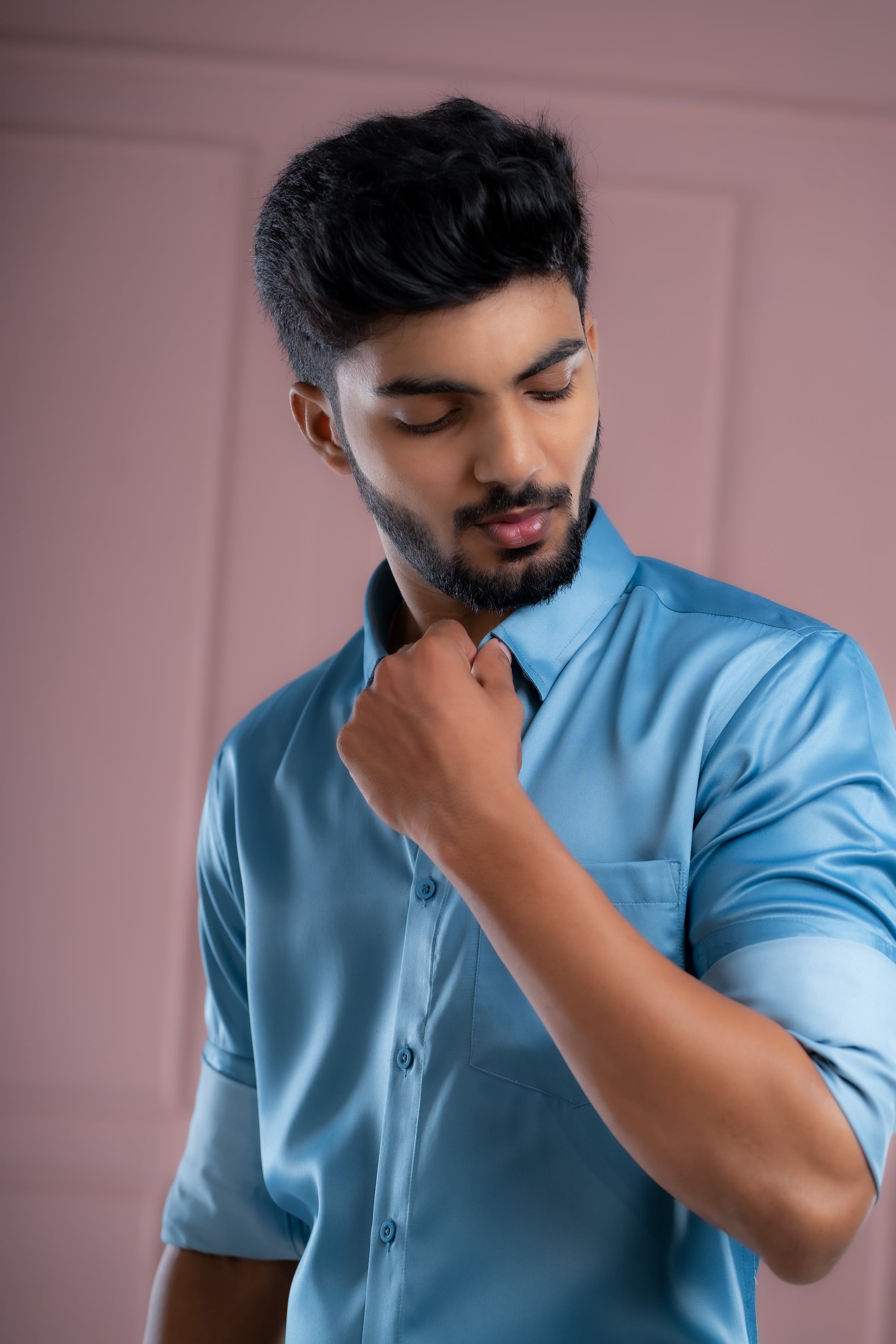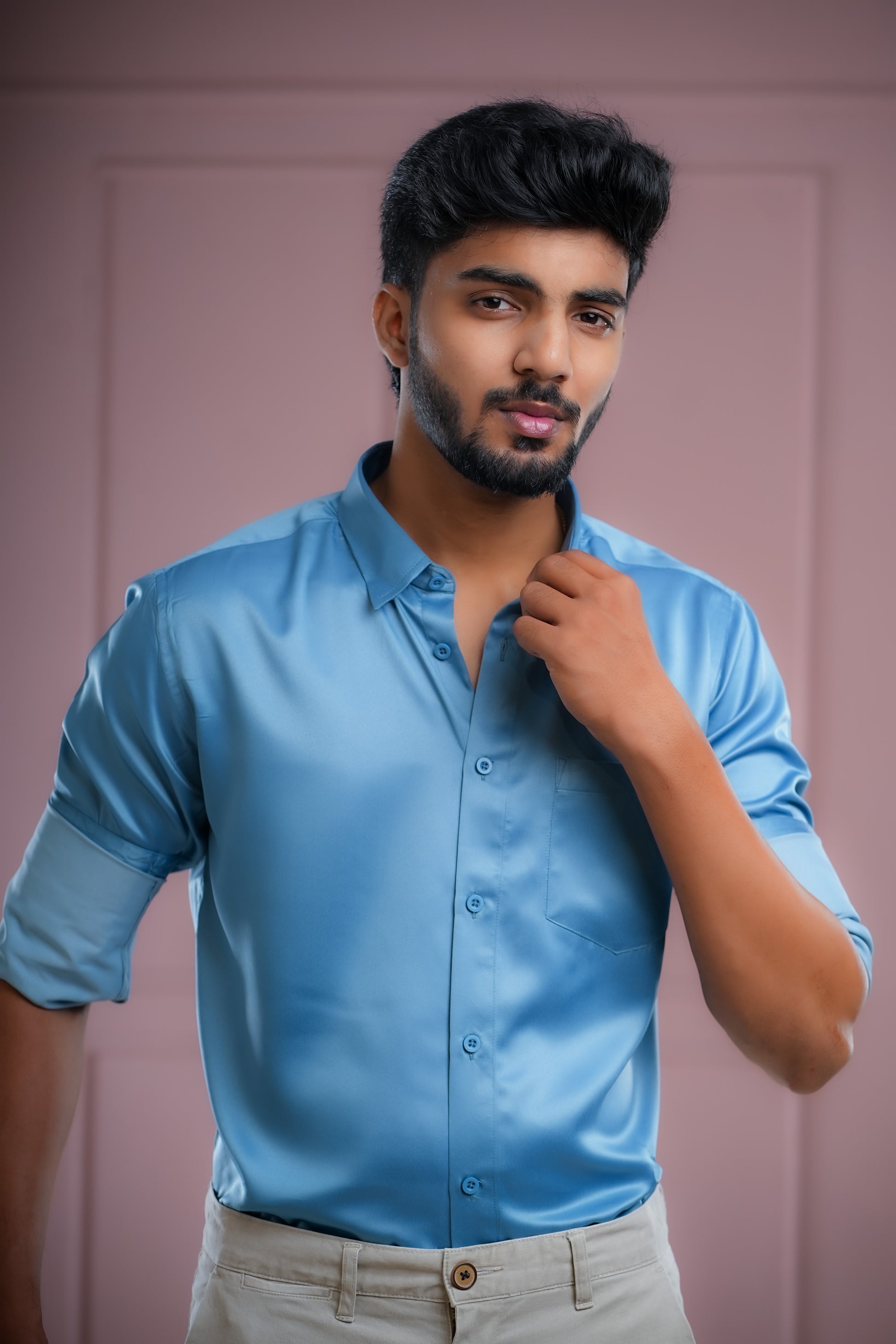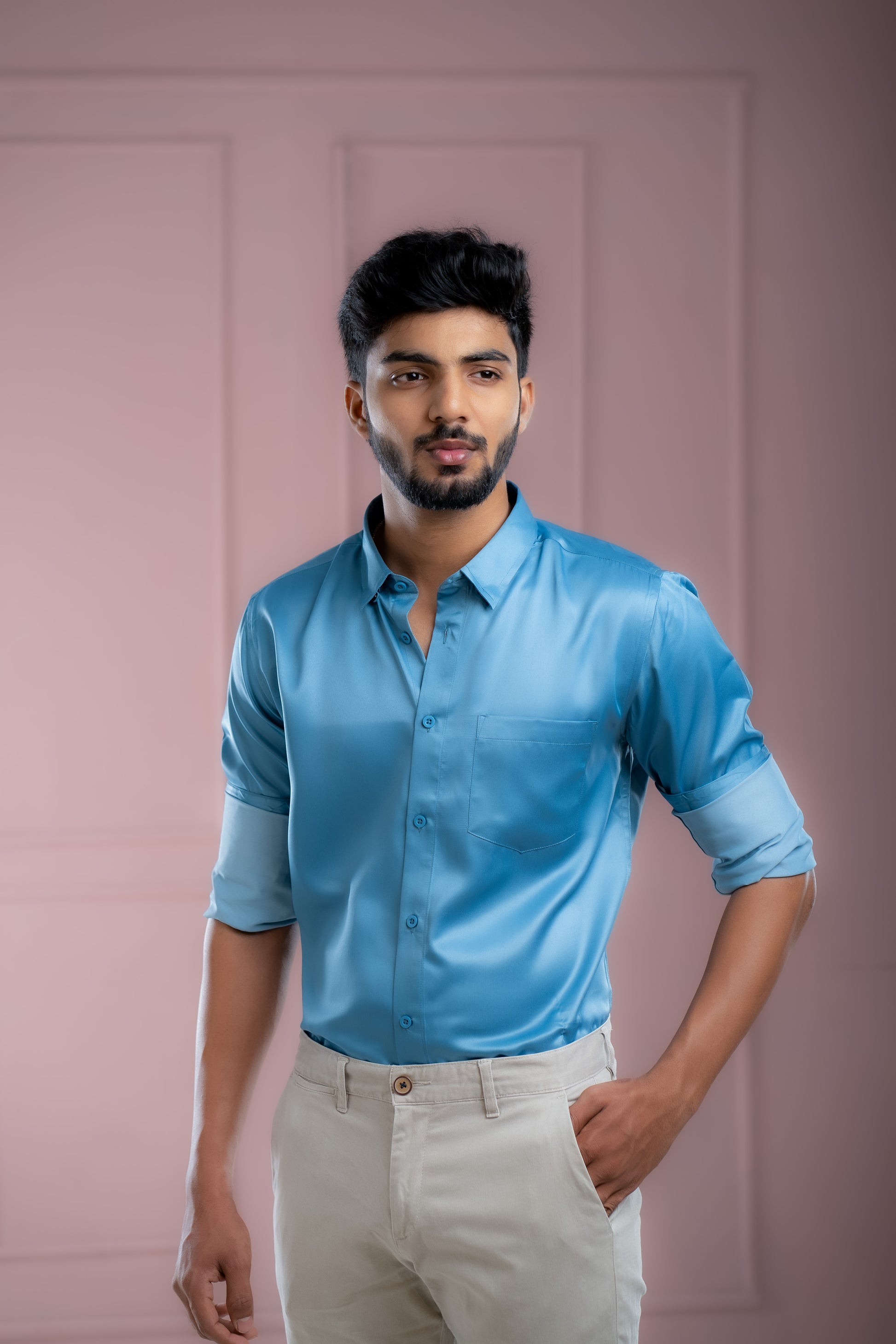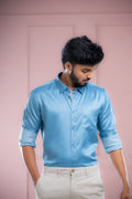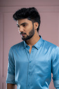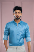 Make a smooth statement with this blue satin full-sleeve shirt. With its luxe sheen and silky finish, it’s built for nights that call for a little extra flair. Effortlessly bold, irresistibly sleek—this one’s your ticket to standout style.