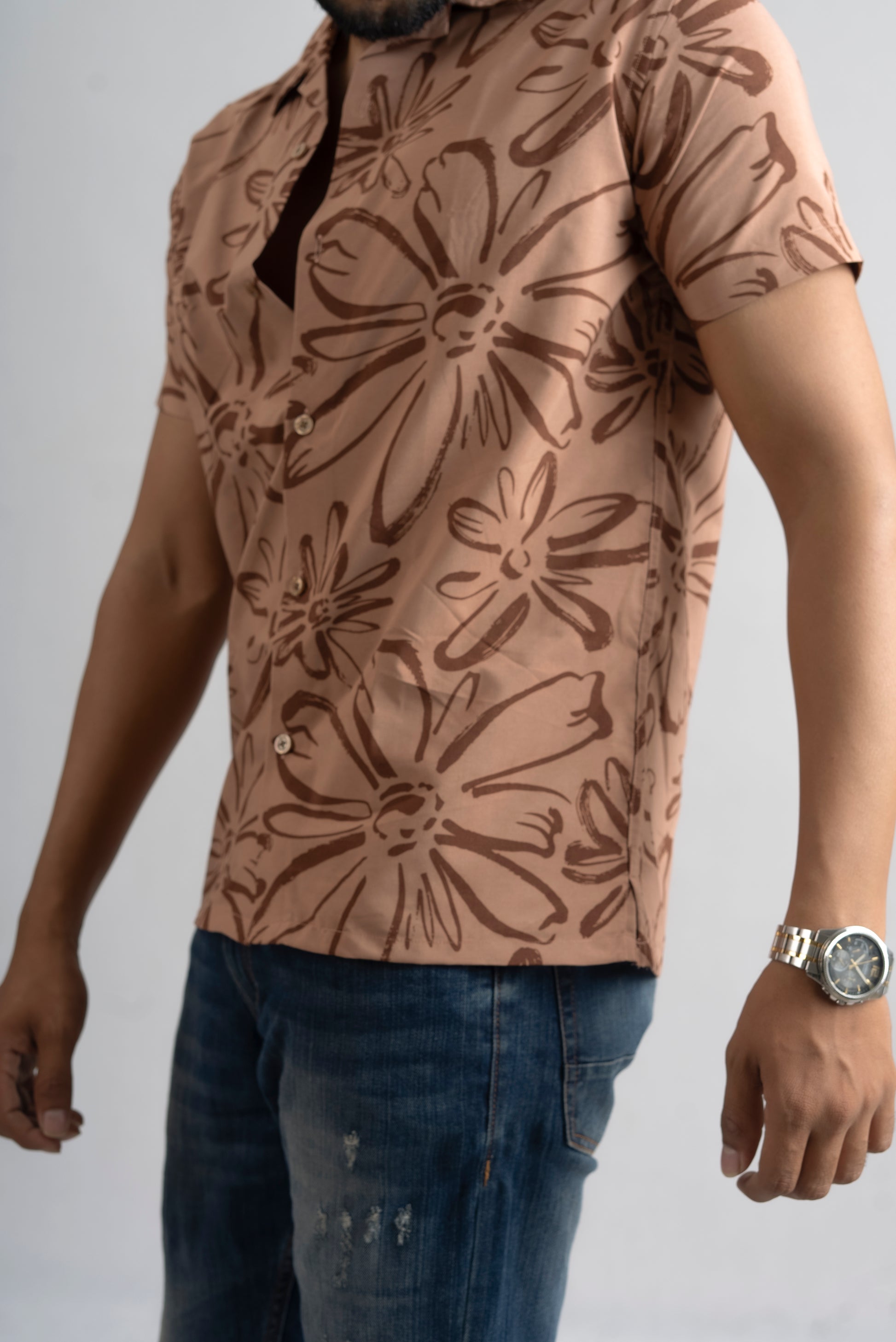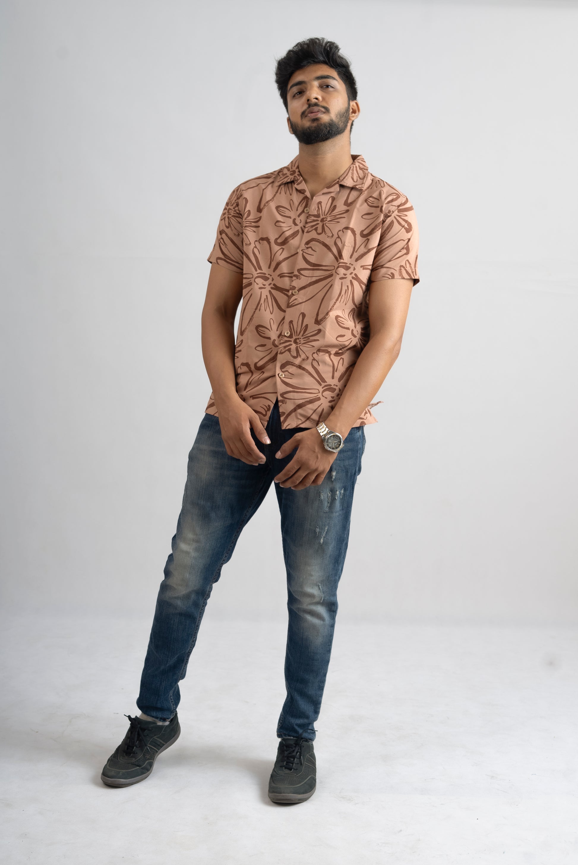 Embrace earthy vibes with this brown floral printed half-sleeve Cuban collar shirt. With its laid-back fit and vintage-inspired print, it's made for slow Sundays, coffee dates, and effortless cool. Subtle, stylish, and just the right amount of bold.