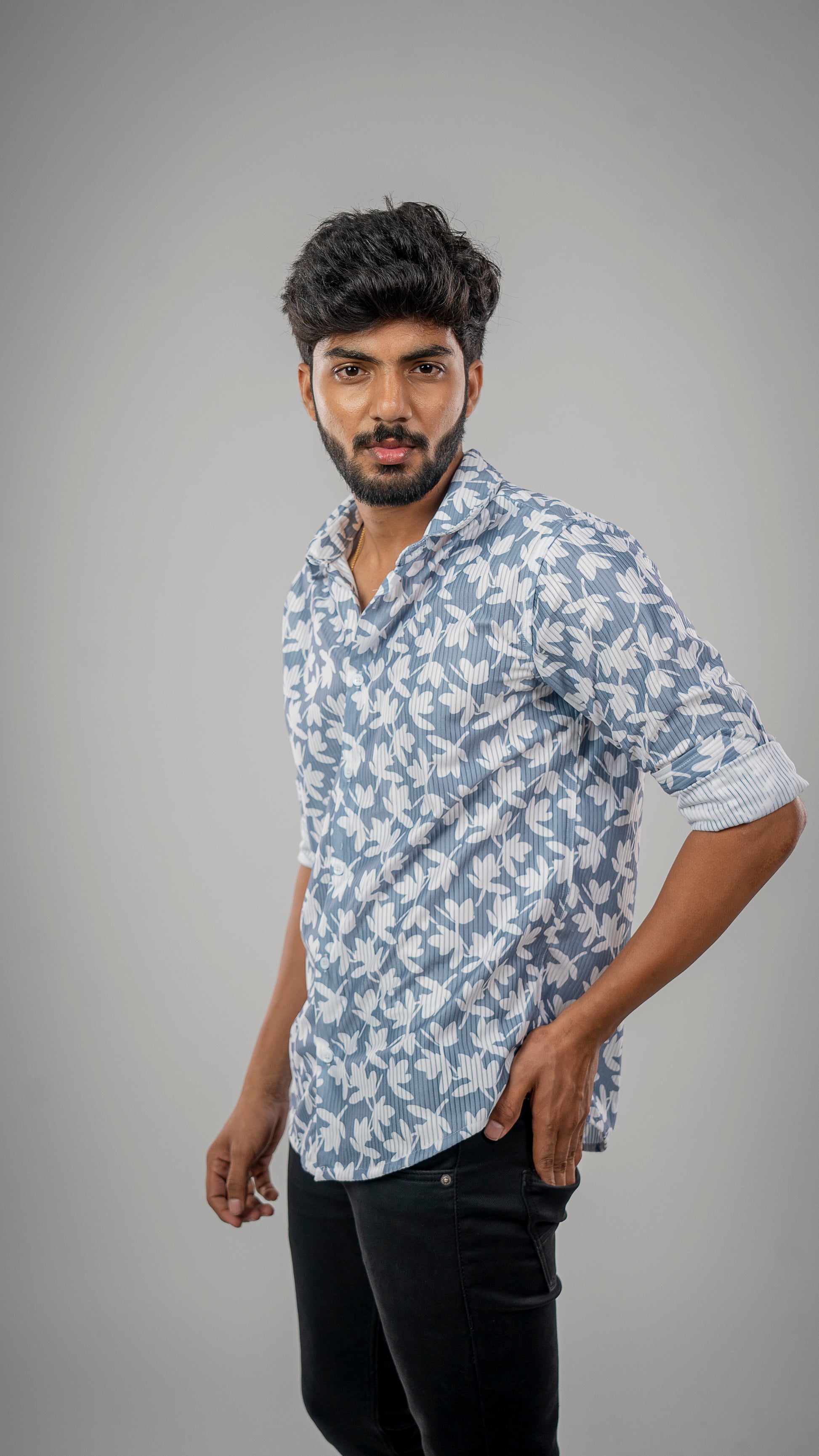 Turn heads effortlessly with this Atom Blue floral-printed shirt. With rich full sleeves and a corduroy-like texture, it blends vintage charm with modern flair. Soft, stylish, and seriously cool—perfect for cozy café dates or laid-back evenings in style.