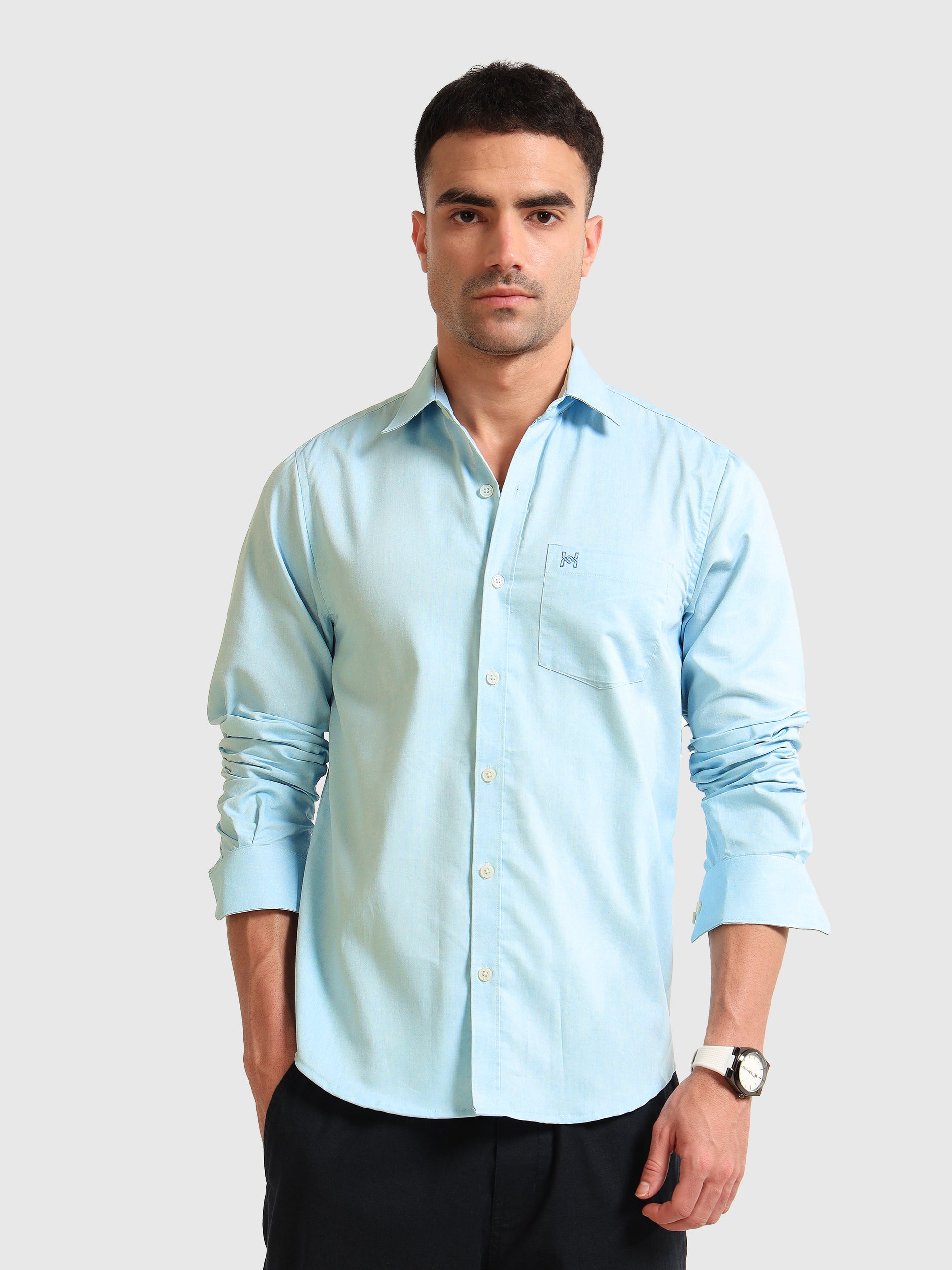This ice blue full-sleeve shirt is made from soft, premium cotton for all-day comfort. Its fresh, cool color and classic design make it perfect for work or special occasions. Quality craftsmanship ensures you look sharp and feel confident every time you wear it.