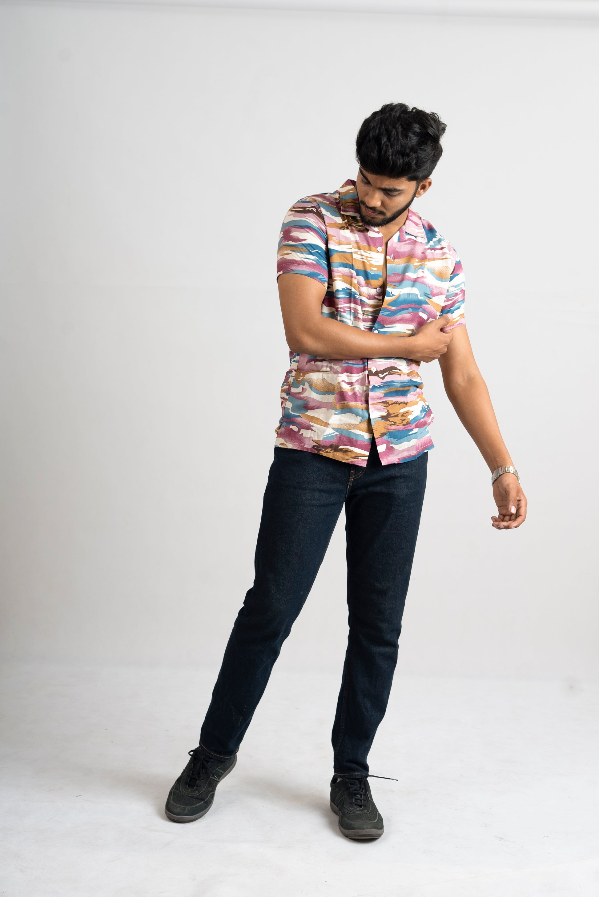 Ride the style wave with this pink and blue wave printed shirt. Vibrant, fluid, and full of movement, it’s a head-turner that brings art to your outfit. Perfect for beach days, music nights, or whenever you're in the mood to stand out with ease.