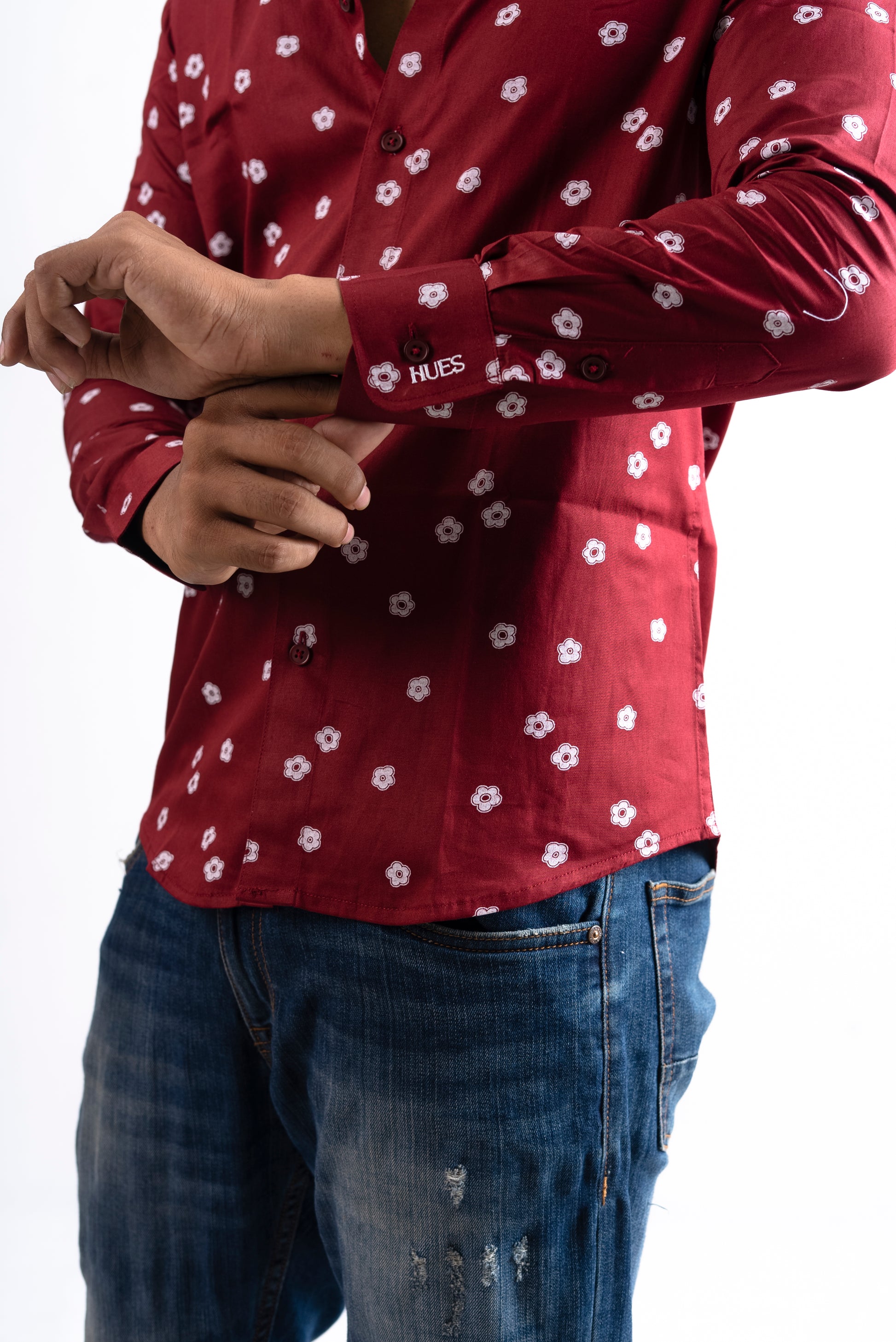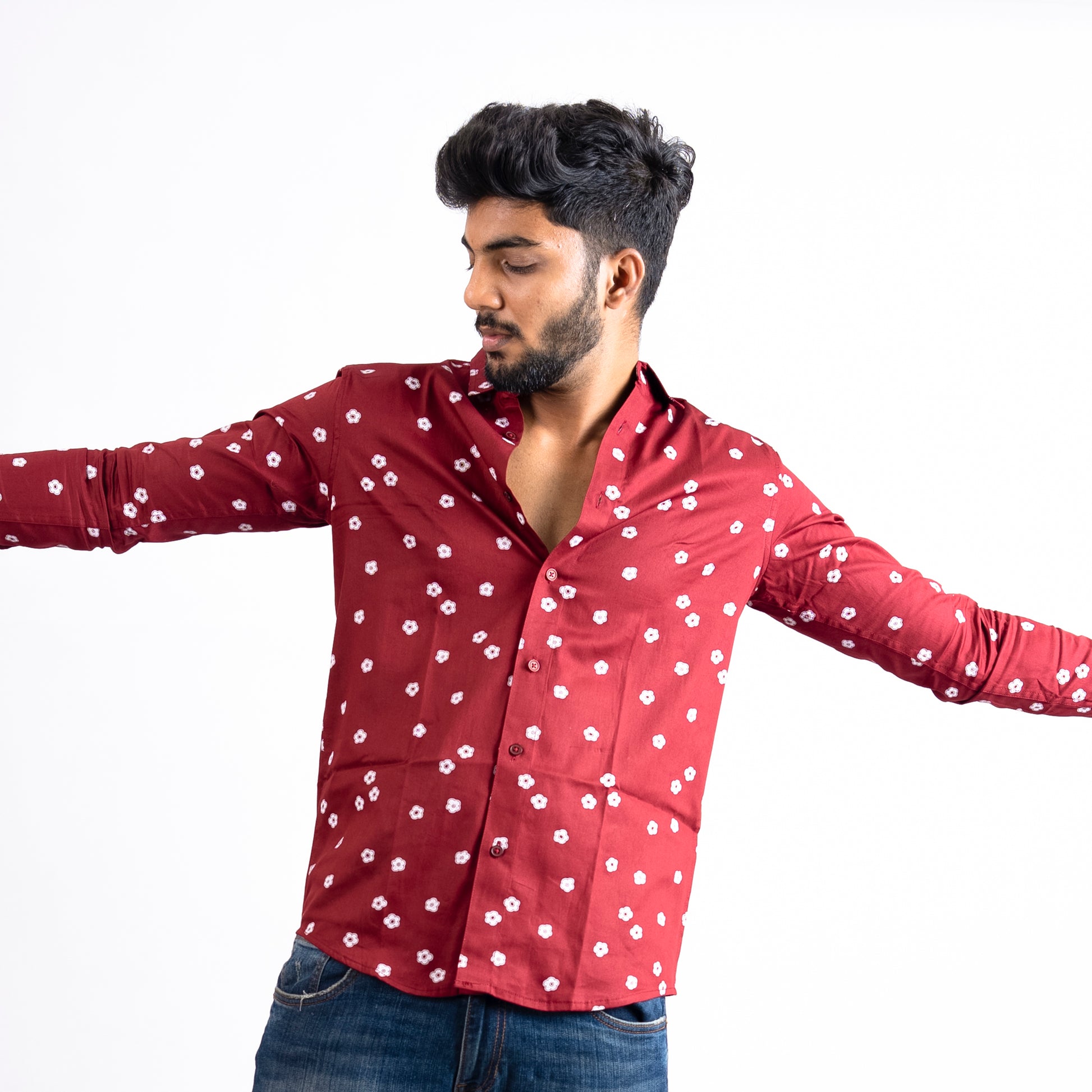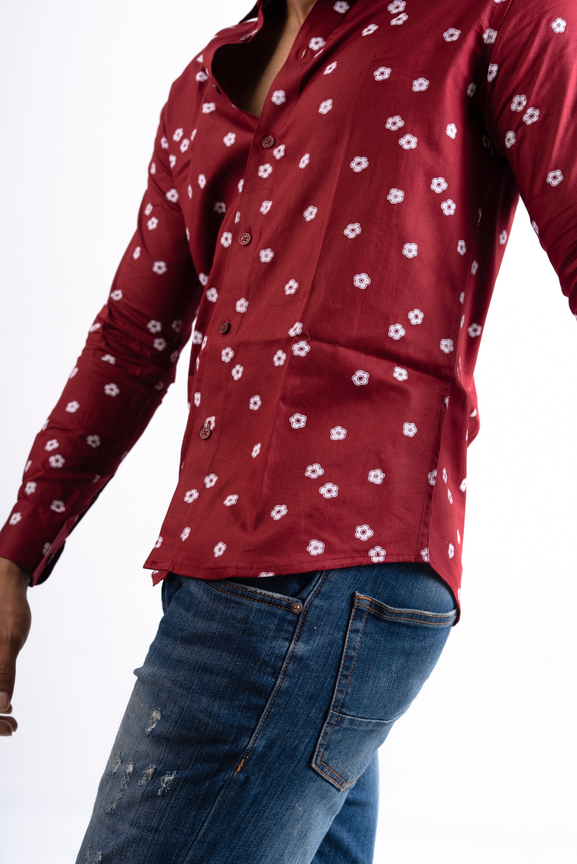 Stand out in style with this red floral printed shirt. The vibrant blooms against a rich red backdrop create a bold, yet effortless look. Perfect for adding a pop of color to your day or making a statement on a night out.
