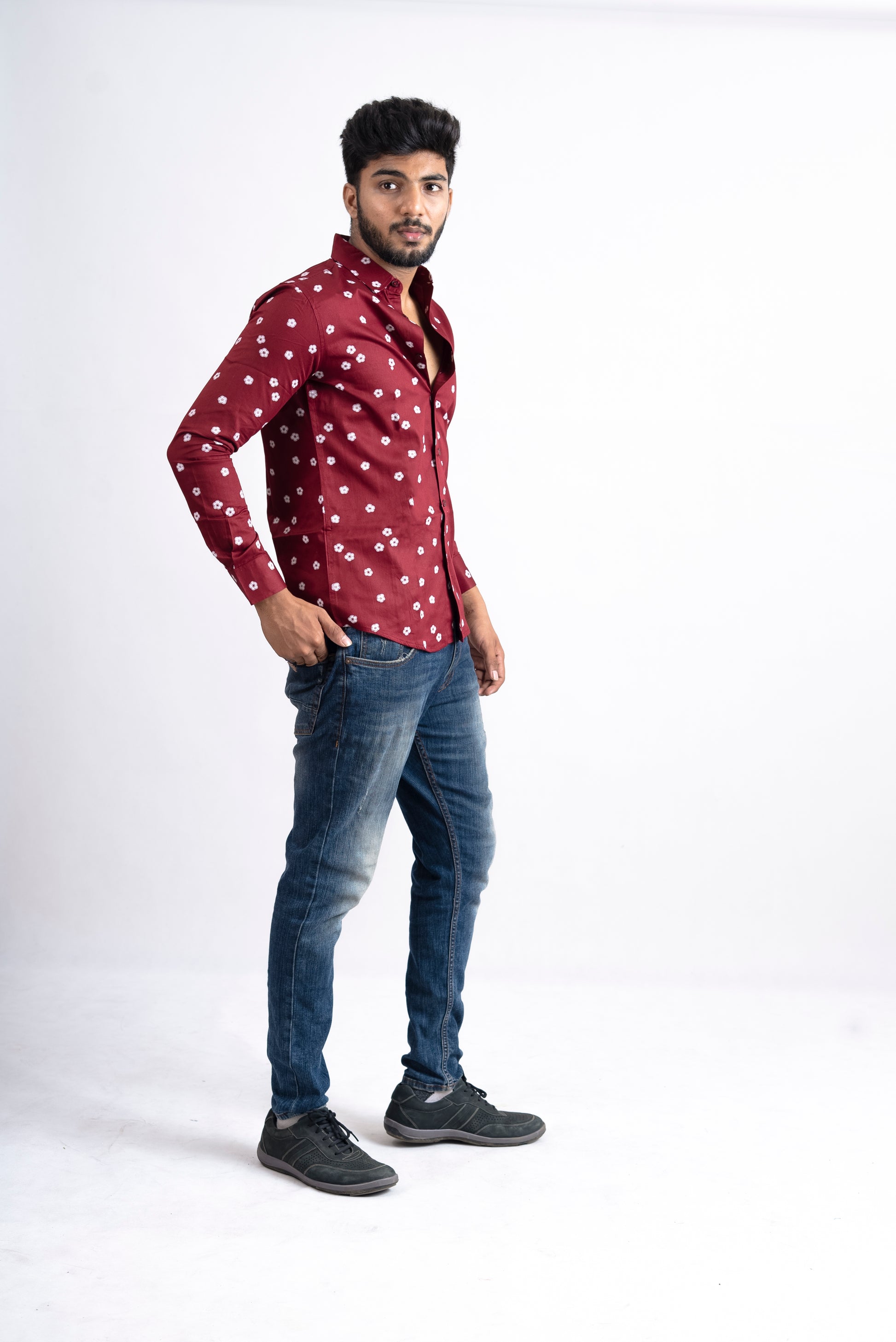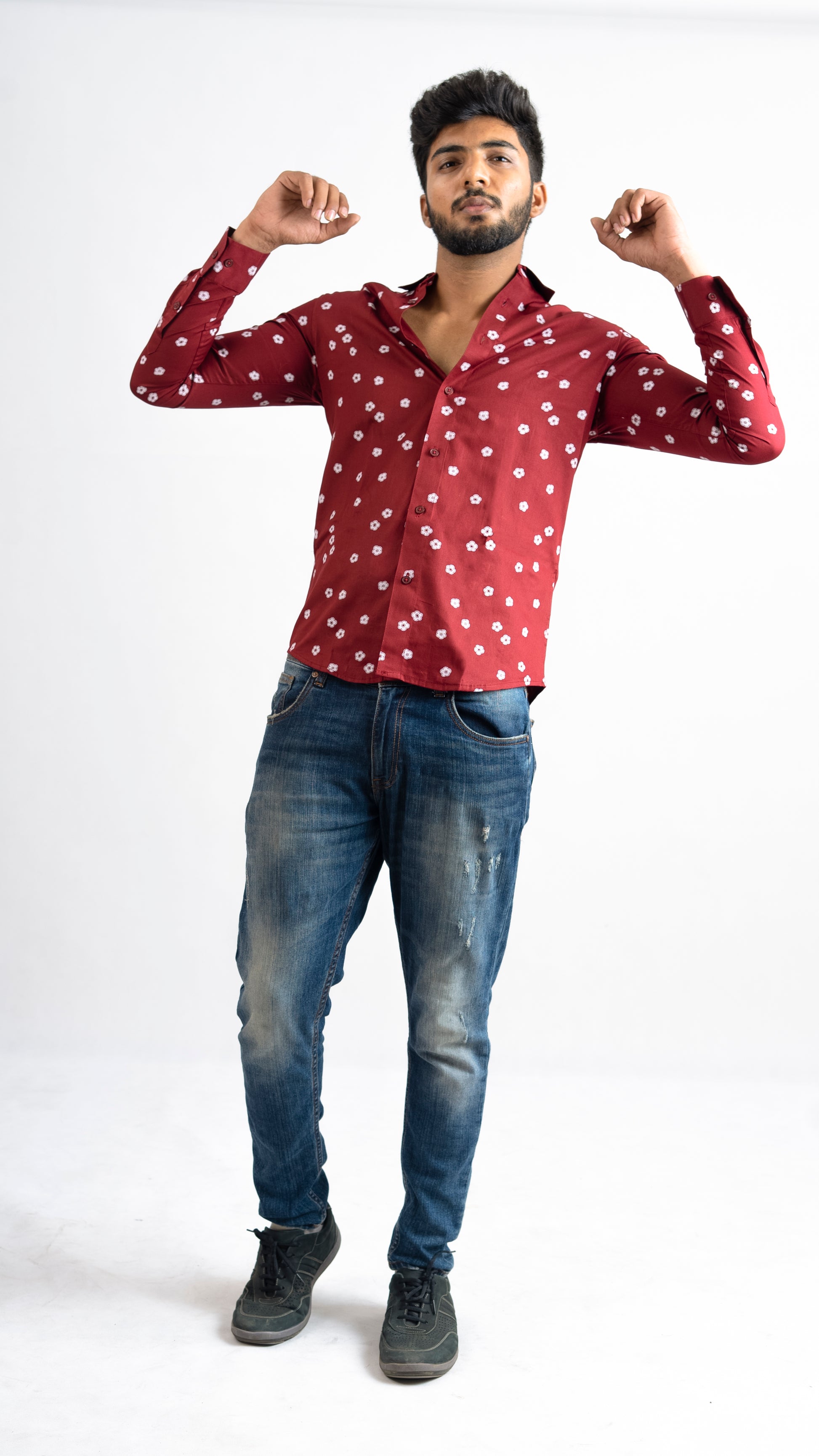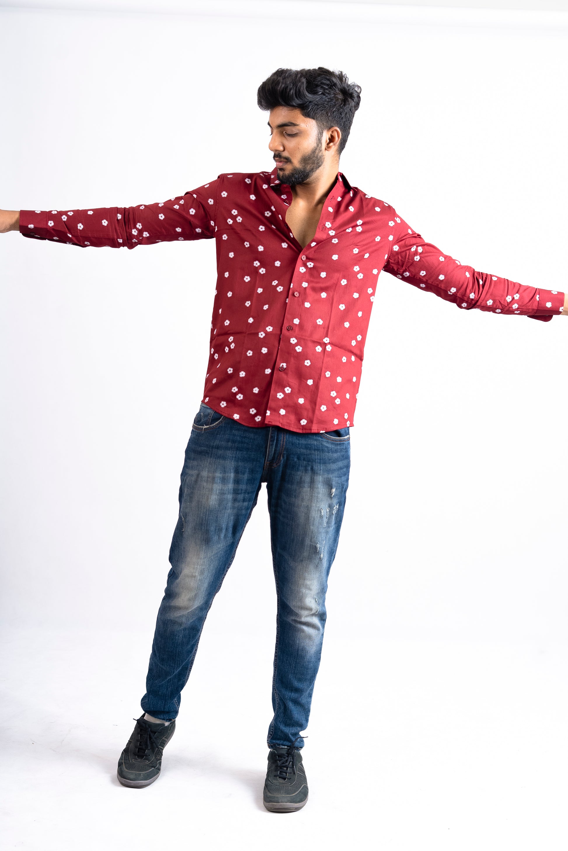 Stand out in style with this red floral printed shirt. The vibrant blooms against a rich red backdrop create a bold, yet effortless look. Perfect for adding a pop of color to your day or making a statement on a night out.